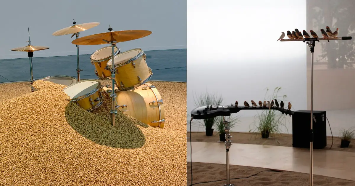 "Fluide" de Céleste Boursier-Mougenot à la Hab Galerie - Expérience étonnante à découvrir : la musique est jouée par des oiseaux et des noyaux de cerises...