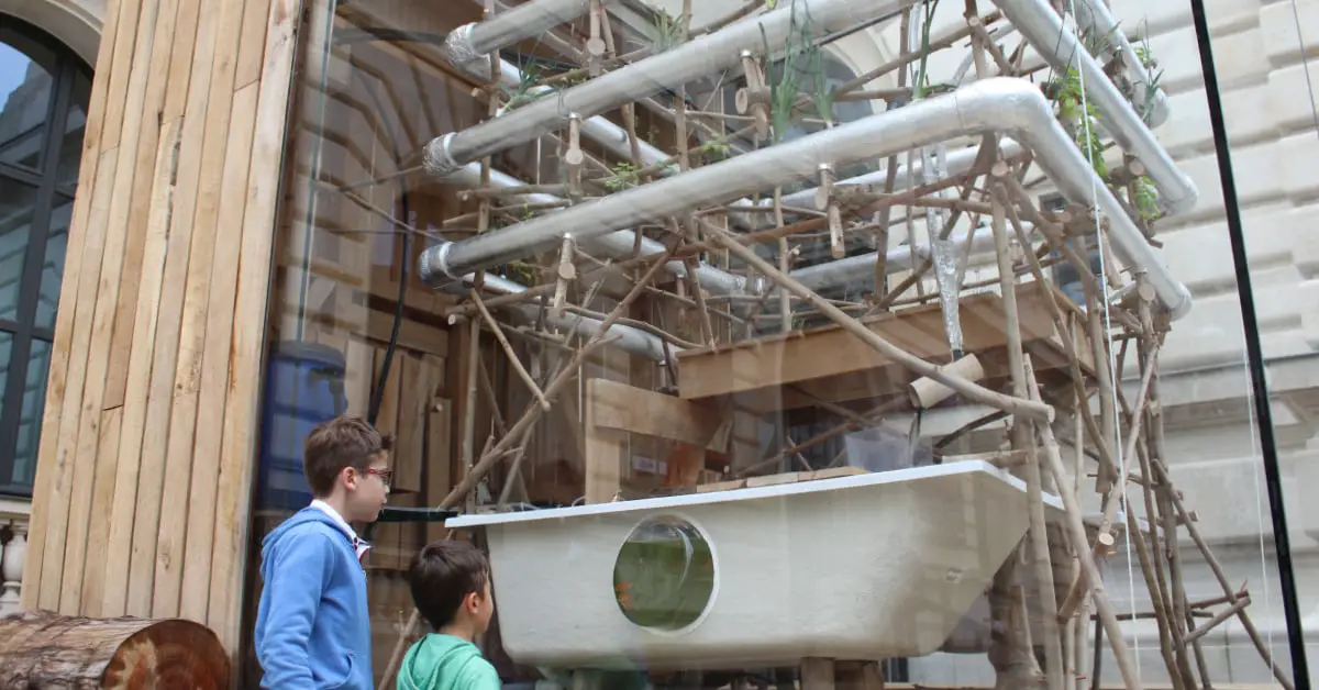 Installation de Tixador - Parvis Musée Arts de Nantes - Un potager aquarium offrant une plantation selon la technique de culture aquaponique......